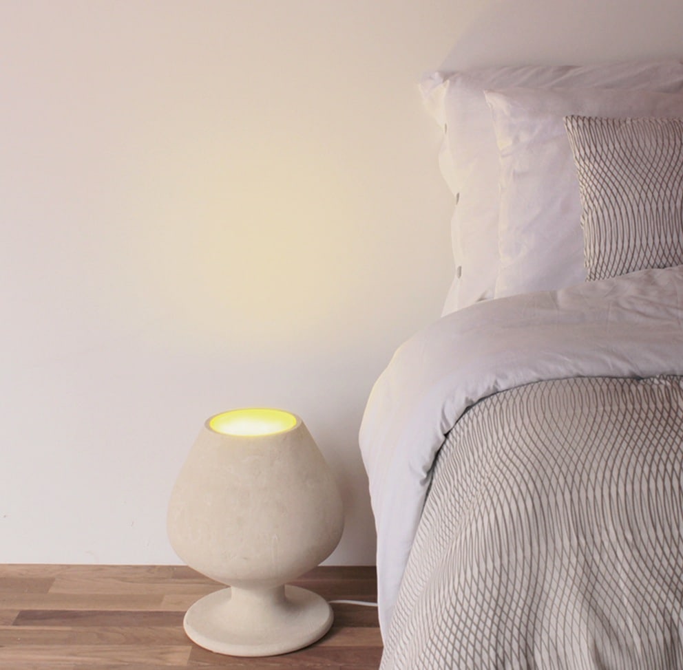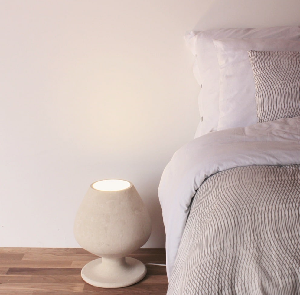 La Lampada di design in Pietra Leccese Cognac, ha la famosissima forma del bicchiere per distillati più usato al Mondo. Può essere utilizzata come lampada da terra o da tavolo, ma anche come piccolo poggia oggetti comodino per letti bassi giapponesi unendo la funzione di comodino a quella di abat-jour.