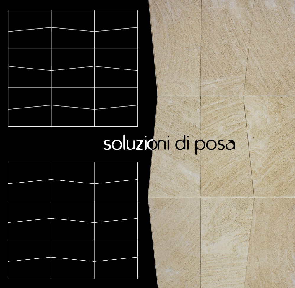 Rivestimento in Pietra Solare, dallo spessore di 2 cm. con un lato obbliquo e a spigolo vivo con dimensioni 50×25. Ideale sia per esterni che interni, ottimo in ambiente rustico.