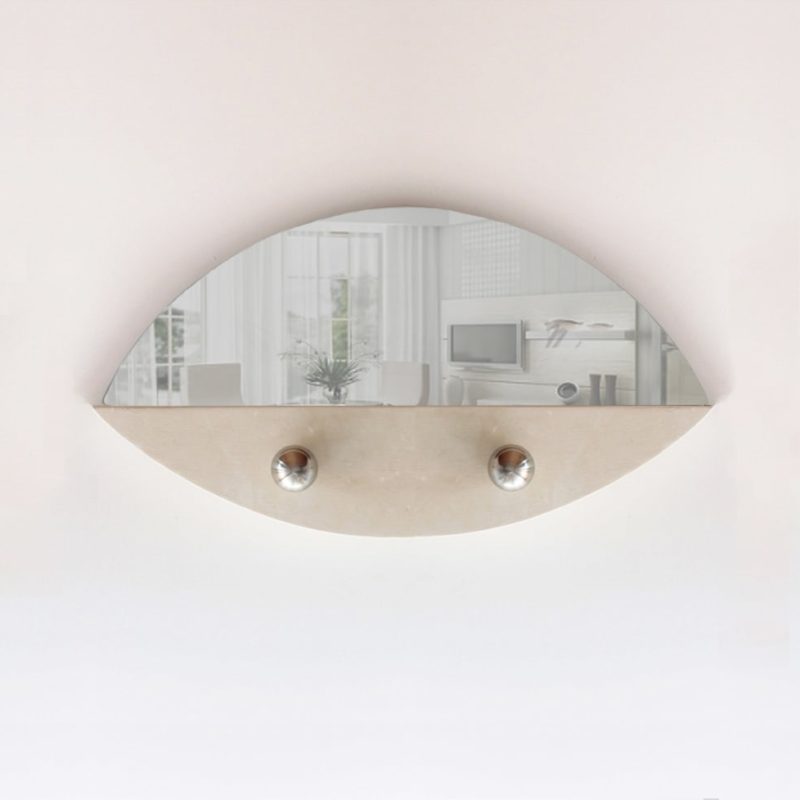Specchio appendiabiti Fish, con due pomelli in acciaio ed un piccolo ripiano porta oggetti di dimensioni 77x 35x 6 cm.